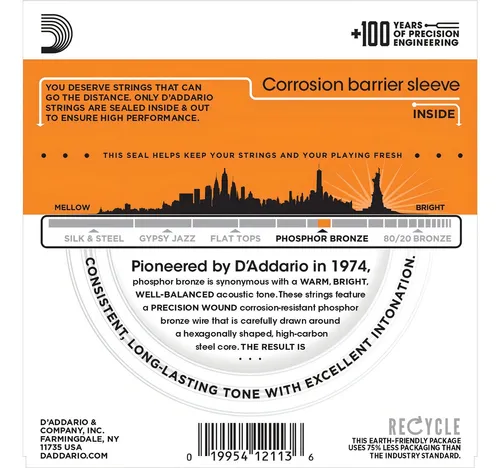 • Aleación de Phosphor Bronze: 92% cobre y 8% estaño para un tono cálido, brillante y equilibrado.