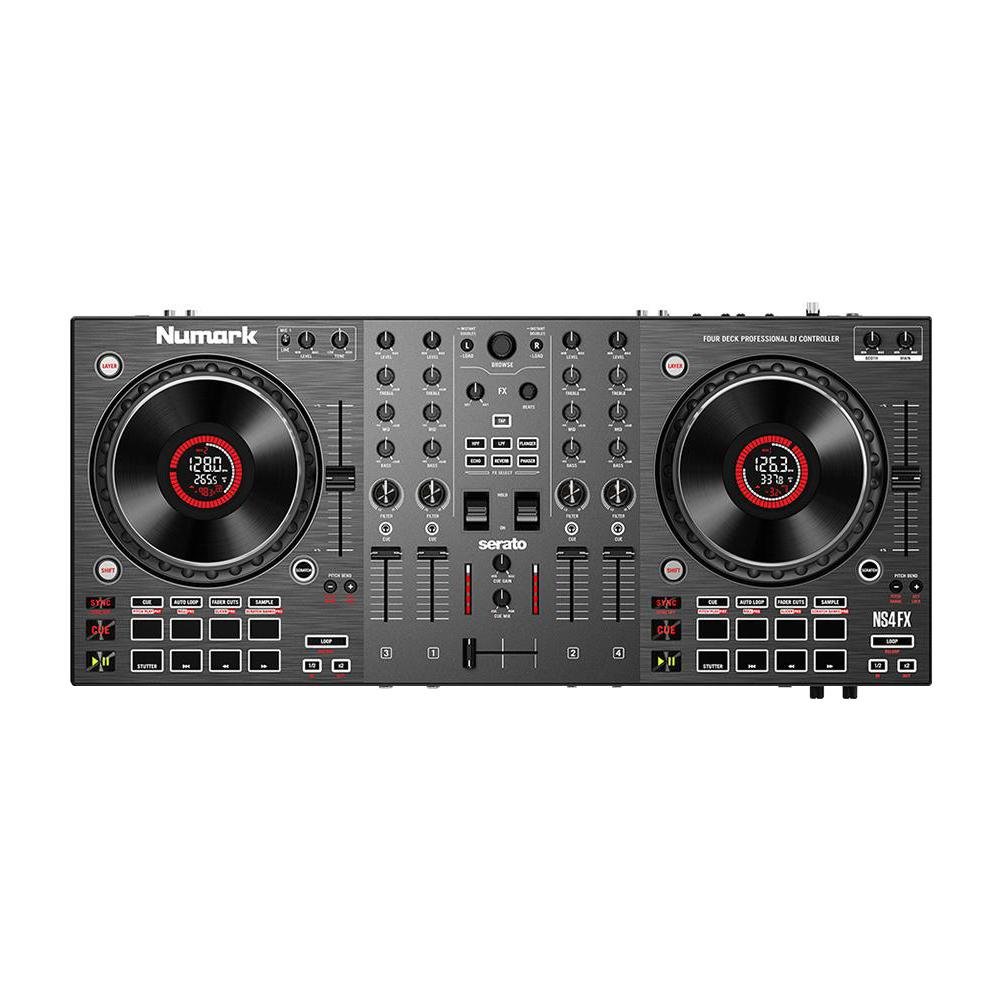 En Casa Musical La Nota, sabemos que un DJ profesional no solo necesita buen gusto, sino herramientas que no le fallen. La Numark NS4FX se posiciona como una de las mejores opciones para el DJ móvil y el clubber. Su gran ventaja competitiva es el acceso a 4 canales independientes de software, lo que te permite tener dos pistas sonando mientras preparas un acapella y un efecto en los otros decks.